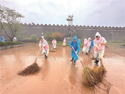 本报讯 6月28日清晨,天色渐渐亮起来,梅城镇党委副书记胡风华在江边巡查时,发现江边绿道的积水几乎不见了。