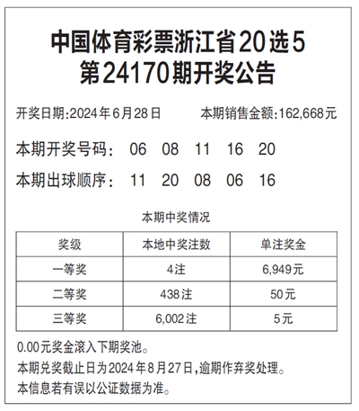 中国体育彩票浙江省20选5