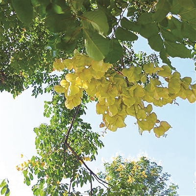 暑热未消,秋意已现。荷花依然亭亭玉立地开着,黄山栾已悄然绽放,为城市镀上了一抹金色,一些性急的还把黄色、红色的“小灯笼”果实挂上枝头,随风摇曳,吸引着路人的目光。