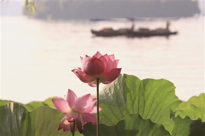 西湖晨光中盛开的荷花 橙友“古色月影” 摄