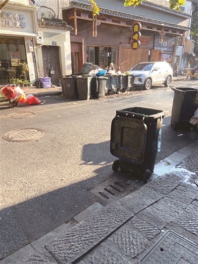 这边是上学的必经之路,垃圾桶散发的味道比较大 ,边上还有散落垃圾,希望有关部门可以调整垃圾清理时间 ,早上7点前就清理。