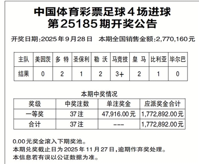 中国体育彩票足球4场进球