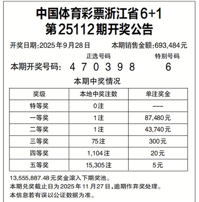 中国体育彩票浙江省6+1