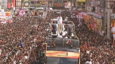 据报道,这场政治集会由当地知名演员维贾伊发起,为其成立的政党参加明年初的地方选举竞选造势。