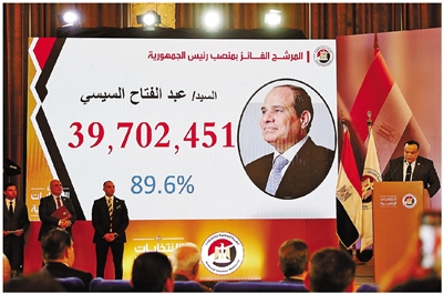 埃及全国选举委员会18日宣布,现任总统阿卜杜勒-法塔赫·塞西以89.6%的得票率赢得总统选举。分析人士指出,塞西连续第三次当选埃及总统,表明埃及民众对其执政能力持肯定态度。即将开启6年新任期的塞西,面临着提振经济、应对地缘安全风险等任务。