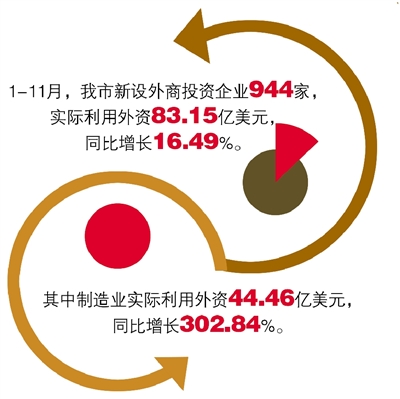 沈建:自今年3月起,全国实际利用外资增速由正转负(同比下降0.49%),至今年11月,降幅已扩大至15.7%,全国重点城市实际利用外资也大幅下降,杭州实际利用外资总量能在全国GDP前11个重点城市中排名第三,仅次于上海及北京,增速排名第一,在全球经济复苏疲软、全国利用外资形势整体低迷的情况下,成绩的取得来之不易。主要是因为: