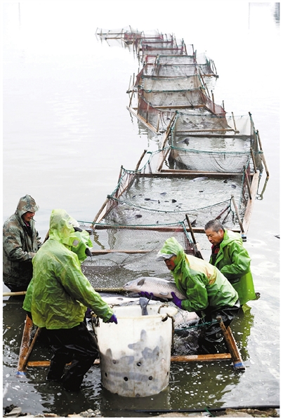 每年春节前,素有“全国青鱼之乡”美誉的秀洲区王江泾镇开始青鱼的集中捕捞。王江泾镇青鱼养殖面积有10000余亩,亩产可超3000斤,其中七成鲜鱼进入到江浙沪一带的水产批发市场。据介绍,今年青鱼价格有所上涨,是进一步拓宽青鱼销售渠道的好机会。