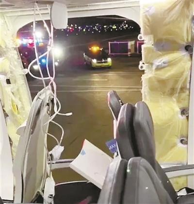据“24小时飞行雷达”网站,客机外部拍摄的画面显示,机舱后段一扇可以用作紧急出口的舱门脱落。社交媒体上流传的乘客所拍照片显示,一扇舷窗及其周围的壁板“消失”,留下一个大洞,好似“敞门”飞机。