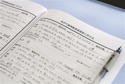 工作人员每天都要填写三次高空气象探测系统工作日志。