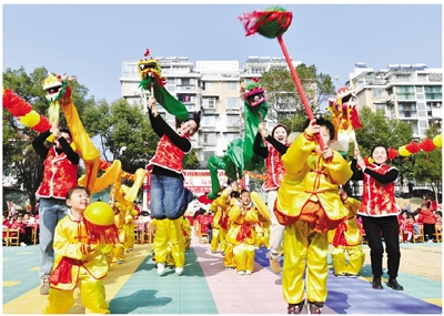 日前,建德市寿昌幼儿园里张灯结彩,孩子们穿上了大红袄,在老师和特邀民间艺人的带领下,一起做饺子打麻糍、敲大鼓舞布龙、学礼仪说祝词、猜灯谜知年俗,并亲手参与制作“年夜饭”,感受传统民俗的浓浓味道。通讯员 宁文武 摄 记者 李忠 文