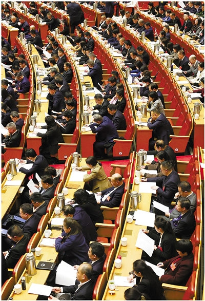 人大代表在市十四届人大四次会议现场聆听报告。记者 法鑫 摄