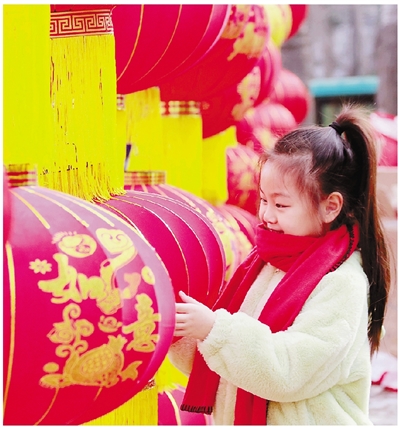 1月30日,小朋友在山东潍坊高密市年货大集上挑选红灯笼。临近春节,各地呈现出浓浓的年味,红红火火迎新春。 新华社发