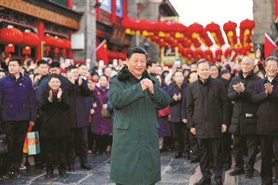 2月1日下午,习近平在天津古文化街考察时,向全国各族人民和香港同胞、澳门同胞、台湾同胞、海外侨胞致以美好的新春祝福。新华社记者 鞠鹏 摄