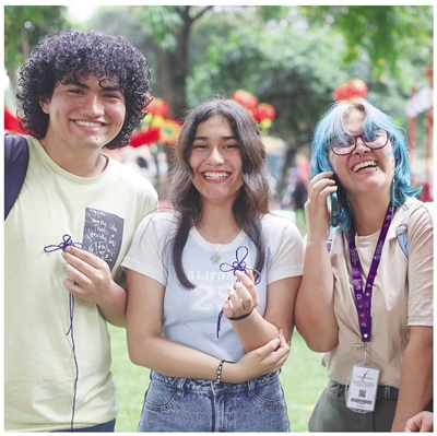 图③:24日,在哥伦比亚首都波哥大,几名学习系“中国结”的年轻人一起合影。