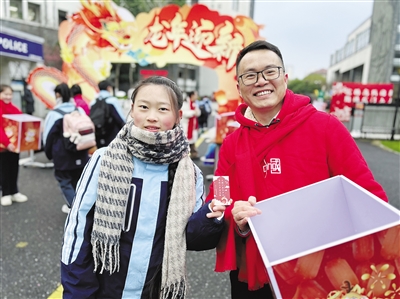 学生张潇冉很惊喜地抽到了自己创作的对联“兔乘神舟归月去,龙出天宫下凡来”。关于创作灵感,她很有想法,“兔是上一年的生肖,龙是今年的生肖,希望大家可以忘掉烦恼,以全新的姿态迎接新学期的挑战。”