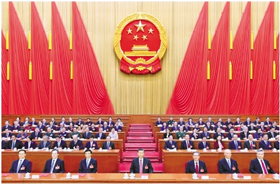 3月11日,第十四届全国人民代表大会第二次会议在北京人民大会堂举行闭幕会。大会主席团常务主席、执行主席赵乐际主持闭幕会并讲话。 新华社记者 李学仁 摄