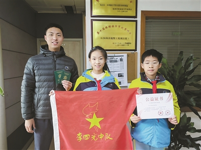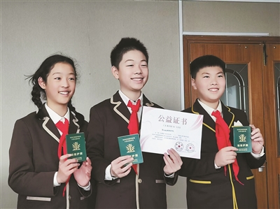 崇文世纪城实验学校的1334名同学,也没忘记。3月7日,大队长许严吾、副大队长王溢乐、李政阳,代表全校同学来到报社,用学雷锋爱心跳蚤市场的义卖所得捐种梭梭,全校一人种一棵,共捐种1334棵梭梭。