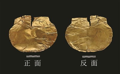 河南郑州商都书院街墓地M2墓葬出土的“金覆面”。