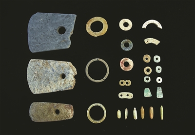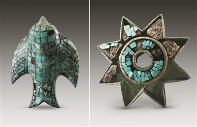陕西清涧寨沟遗址后刘家塔墓地出土的镶绿松石铜饰。