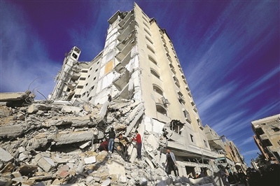 日前,加沙地带居民查看以军空袭后的废墟。