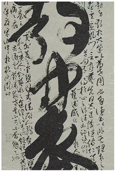 该同学在专业学习上,勤于思考,敢于探索,既有较好的传统基础,也有创新自我艺术道路的雄心壮志。既能作案头日常的小字行楷,也能作八尺、丈二的大字草书。本科阶段他多有涉猎徐渭书法的“狂”,硕士研究生阶段渐转向黄宾虹艺术的“学”和“养”,这是令人可喜的改变。诚望其在今后的学艺生涯中,能兢兢业业、踏踏实实,进一步锤炼基本功,志于道,据于德,依于仁,游于艺,不断突破自我,勇猛精进。