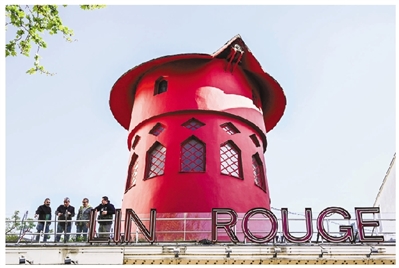 这是4月25日在巴黎拍摄的叶片掉落后的红磨坊风车。 新华社发
