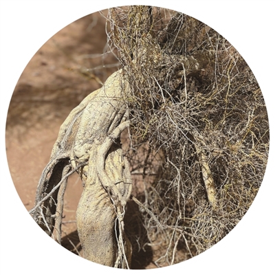 在一株裸露粗壮根部的梭梭前,我们忍不住想评它为“树王”,它的根部远比枝干粗大、有力,有一处呈直角向下生长,似乎与大地连为一体。小马哥介绍,这批梭梭已经被种下第十一个年头。我不禁展望,我们今天亲手种下的梭梭,十一年后也会如此。如果越来越多的人参与捐种梭梭,年复一年,它们终究会成长为人们心中理想的“杭州林”。