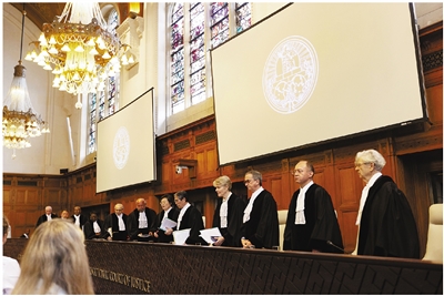 5月16日,在荷兰海牙,国际法院法官参加听证会。 新华社发(西尔维娅·莱德雷尔 摄)