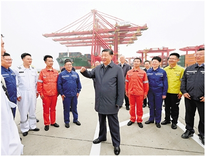 22日下午,习近平首先来到日照港考察。日照港是重要的能源和大宗原材料中转基地,近年来推进智慧化、绿色化建设,建成顺岸开放式全自动化集装箱码头。习近平听取山东省港口发展建设和日照港规划布局等情况介绍,并察看全自动化集装箱码头作业场景。他说,日照港是改革开放后新建的港口,近年来推进科技创新,将传统港口改造升级为现代化港口,不仅货物吞吐量跻身全国前列,还积累了通过传统产业改造升级发展新质生产力的经验,值得肯定。(下转第2版)