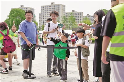 现场以家庭为单位来看展的还有很多,到处都能见到牵着孩子手的年轻父母,他们逛展的兴致很高。