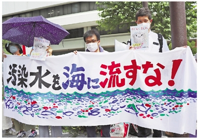 日本民众手持“不许将污染水排入大海”等标语在东京电力公司总部前集会抗议。 新华社记者 杨光 摄