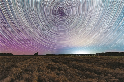 这是近日在黑龙江省富锦市上街基镇万有村拍摄的星空下的麦田(堆栈合成照片)。近期,“北大仓”黑龙江省农作物陆续进入成熟期。夜幕降临,作物与瑰丽的星空来了一场浪漫的“约会”。