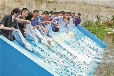 本报讯(记者 叶佳裕)昨天早上,暑气消退,临安区昌西溪碧水中迎来了24万尾马口鱼。因其鱼身鳞片在阳光折射下显现“彩虹色”,在民间又被称为“彩虹鱼”。