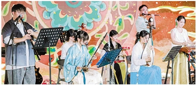 小河公园内新设的音乐集装箱上,“鹿鸣国乐团队”用民族乐器演绎《紫竹调》《采茶扑蝶》《上春山》《莫吉托》等歌曲,在温柔晚风中打造一个充满魔力的音符秘境。据悉,音乐集装箱演奏会将持续到8月30日。