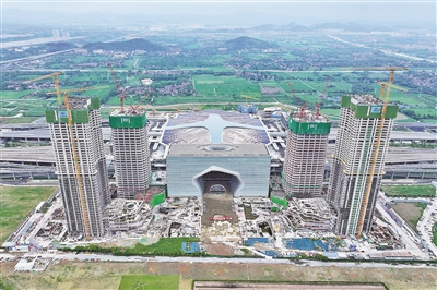 近日,杭州西站枢纽云门中心(云城南区“金手指”综合体项目)超高层D塔楼主体结构率先结顶,刷新了西站的天际线,另三座塔楼也正雨后春笋般节节拔高,“金手指”综合体项目已初具雏形。据了解,D塔楼计划在2026年率先竣工交付,而整个“金手指”综合体项目预计于2028年投用。记者 李忠 摄