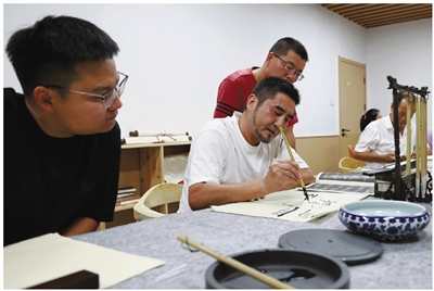 “来上课的村民有部分是完全没有书法功底的,纯粹是兴趣,所以我的课就从基础开始上。”蓝银坤说,在公益课上,他向村民们详细讲解了书法的基本技巧和笔墨运用,从握笔姿势到字形结构,每一个细节都不放过。在实践环节,蓝银坤亲自示范,以其深厚的书法功底和生动的教学方式,让村民们深刻地领略到了书法艺术的魅力。