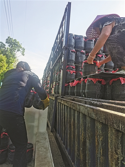 10月2日,工人们正在杭州农副产品物流中心卸下从辽宁发来的海蜇。受访者供图