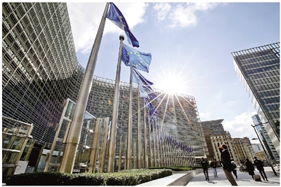 这是10月4日在比利时布鲁塞尔拍摄的欧盟委员会大楼一角。 新华社记者 赵丁喆 摄