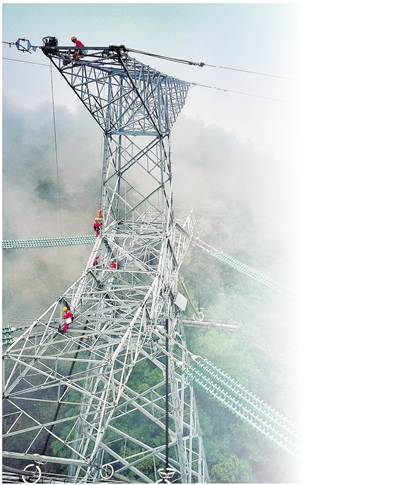 本报讯(记者 温欣欣 通讯员 张蕾)“这次我们进行了地线融冰绝缘化改造工作,还配备了载重无人机,之后可搭载高温高压水流喷射装置对覆冰的绝缘子进行融冰除冰,多举措备战电网迎峰度冬。”在位于临安区千秋关海拔677米高的±800千伏特高压直流灵绍线(以下简称“灵绍线”)3060#杆塔下,国网杭州供电公司超特高压输电运检班班长胡允乾介绍了此次“西电东送”大动脉跨省改造中“融冰改造”工作的要点。