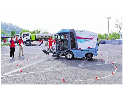 比赛模拟了机动车道清扫、非机动车道清扫、精细化保洁3大项10多个小项场景,从应急冲洗、路面清扫、紧急救火,到清理浆果、油污、非法小广告、涂鸦渍等,多维度检验了环卫工人职业水平,更考验了他们对洒水车与机扫车“混合双扫”、小型机具单洗补扫、快保车绕行“S”弯精扫等规范作业掌握情况以及对交通安全常识的熟悉程度等。