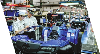 日前,在浙江春风动力股份有限公司,工作人员正在将一批自主品牌的全地形车进行打包、装车。不久之后,这批全地形车将出口销往沙特阿拉伯。据企业相关负责人介绍,今年金砖国家的市场销售非常好,前三季度对金砖国家的出口额接近翻倍。
