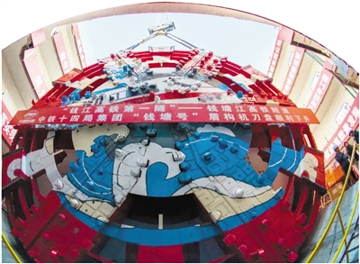 本报讯(记者 杨怡微 陈立平)近日,随着直径14.9米的超大直径盾构机刀盘顺利下井,由中铁十四局施工的铁路杭州萧山机场线钱塘江隧道“钱塘号”盾构机组装工作基本完成,首条穿越钱塘江的高铁隧道盾构始发进入“倒计时”。