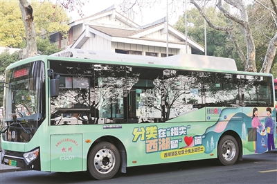在西湖景区,绿色行动不断推进。来到西湖游玩,你会看见道路上来回穿梭着车身贴着“分类在‘指间’,西湖留‘心间’”标语的垃圾分类主题巴士,车内以播报语音等形式向市民游客宣传垃圾分类工作,这是景区提升公众垃圾分类意识的一项小举措。西湖景区希望通过做好垃圾分类,以及各种绿色活动,将生态环境保护落到实处。