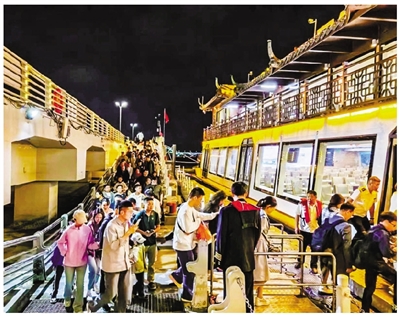 为丰富产品类目,杭州水陆交旅发展集团创新推出串联运河三大历史文化街区的运河环线旅游产品,并不断迭代升级,先后推出新春“大运龙灯福气船”“花young趣游船”等主题活动,以非遗手工、传统年俗文化、特色季节装饰及新潮互动项目吸引大量游客。为了让市民游客沉浸式体验宋韵风情,“品味宋韵”将夜游航线调整为伴有古筝现场演奏的“古韵听音”航线及更具亲水性的“乘风畅游”航线,游船上不定期推出宋代舞蹈、碟琴合奏、宋式点茶、名画品鉴等活动。