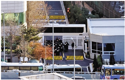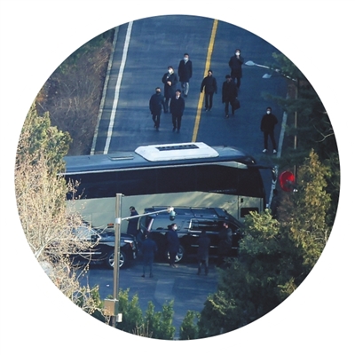 当天午后,执行逮捕令的相关人员陆续离开韩国总统官邸。 新华社/纽西斯通讯社