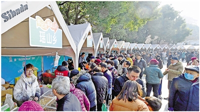 1月4日,冬日暖阳下的杭州运河文化广场人气爆棚,正在这里举办的“千岛农品市集暨书记进城卖山货”活动吸引了众多市民前来选购。这也是淳安县继去年两次开展“书记进城卖山货”系列活动并大获成功后的又一次“山乡共富 助农促销”大行动。此次活动共有来自淳安23个乡镇、3个经济联合体的100多名基层书记带队,并将于1月10日—12日、1月17日—19日分别在西湖文化广场和运河文化广场再举办两场。记者 李忠 摄