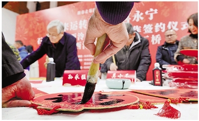 昨日,2025“西泠春运会”的“新春走基层 文化进万家”系列活动,来到拱墅区石桥街道经纬天地创意产业园。西泠印社社员们挥毫泼墨,现场书写春联、福字,为石桥居民和创业者送上美好的新春祝福,同时还推出“欢喜永宁——节气里的运河记忆书画印作品展”,展出西泠印社社员精心创作的二十四节气篆刻、运河记忆国画、欢喜永宁主题书法等作品。通讯员 张砚春 文 记者 李忠 摄