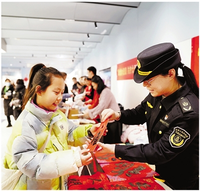 本报讯(记者 吴佳妮 通讯员 李清)春运第二天,杭州武林门码头的候船大厅内,洋溢着浓浓的“年味”。由杭州市交通运输行政执法队内河港航执法大队牵头组织的“新春送福 平安过年”志愿者活动在此展开,只见一排桌子依次摆开,志愿者们热情洋溢地服务着前来乘船的市民和游客,同写“福”字、对联,制作新春书签,现场一派热闹。