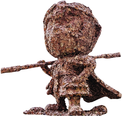 这个名为《悟空·此在》的落叶装置,是杭州市综合行政执法局(杭州市城管局)联合中国美院等单位共同设计打造的。