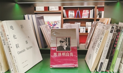 走过一排排书架,可以看到与电影有关的视听语言、拍摄、制作等各工种的专业书籍,也可以看到经典电影的原著书籍,还有很多名导演、名编剧、名演员以电影创作、剧本编写或片场叙述为主题的著作。演员陈冲写的非虚构长篇《猫鱼》赫然放在书架上方。在书店正中位置还专门有一个书架罗列着日本经典动漫家的原著、被改编的影视剧本和创作谈等,像《吉卜力工作室作品全集》、宫崎骏的《龙猫》、藤本树的漫画《电锯人》等经典作品都有展示出售。
